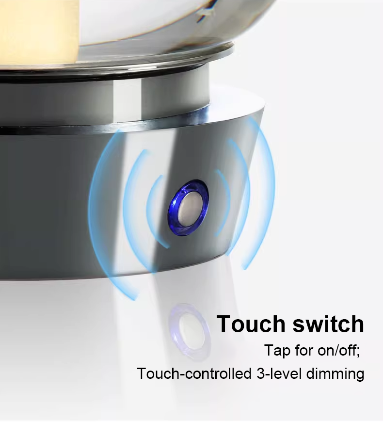 Touch-controlled 3-level dimming, Type-C charging port, ready for use while charging.